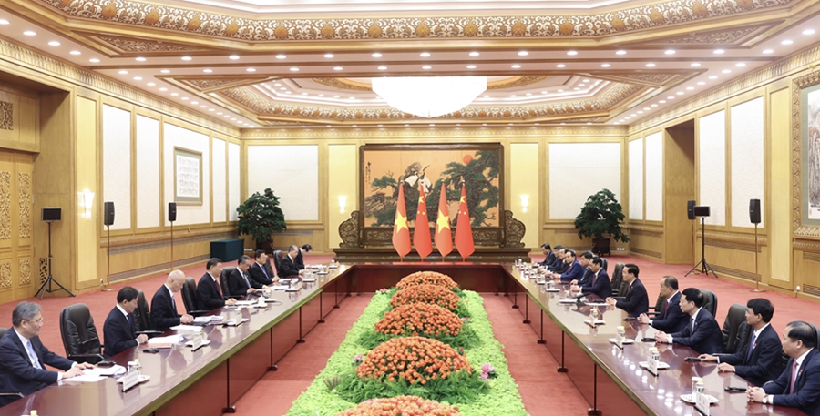 習近平指出,中越兩國在爭取各自民族解放事業中相互支持,結下了“同志加兄弟”的深厚情誼。中越都在推進各自的社會主義現代化事業,都把中越關系作為各自對外政策的優先方向,都把對方發展視為自身發展機遇。面對風云變幻的國際形勢和艱巨繁重的國內發展任務,兩國要不忘傳統友好初心,牢記共同理想使命,攜手走好社會主義道路,構建具有戰略意義的命運共同體,確保兩國關系始終行駛在互利共贏、攜手發展的快車道上。