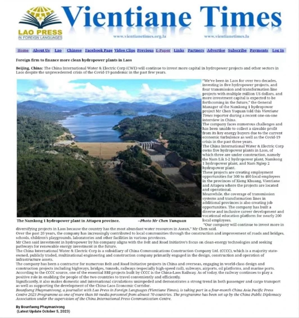 本篇為老撾記者對中國交建老撾水電項目的報道摘要。