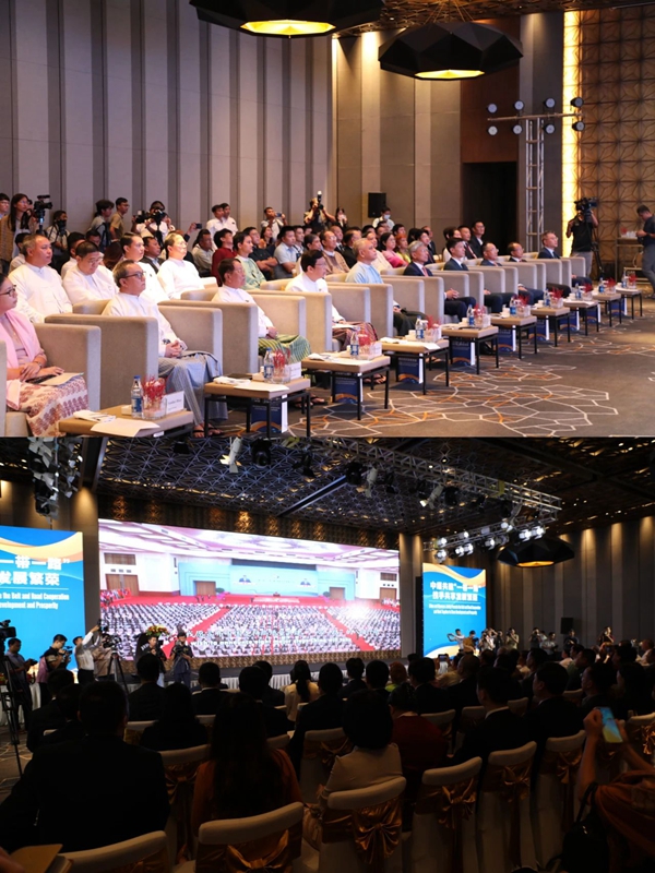 兩國與會人士暢所欲言,坦誠交流?,F場還播放了介紹中緬“一帶一路”合作成果的短片。