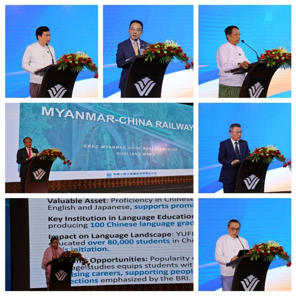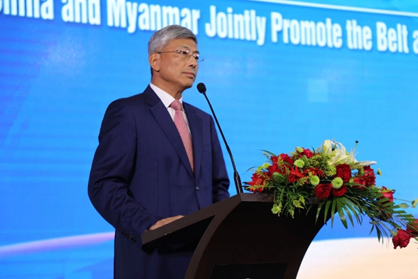 陳海大使在致辭中介紹了第三屆“一帶一路”國際合作高峰論壇的重要意義和成果共識,積極評價中緬共建“一帶一路”成果進展,表示中緬兩國山水相連,胞波情深,是同甘共苦的命運共同體。緬甸是“一帶一路”沿線重要國家,也是“一帶一路”合作積極參與方和受益者。中緬共建“一帶一路”和中緬經濟走廊,促進緬甸的和平與發展,造福全體緬甸人民。