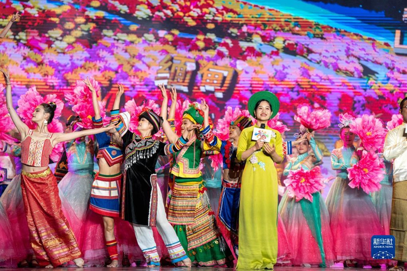 當日,第十一屆瀾滄江·湄公河流域國家文化藝術節開幕式暨文藝晚會在云南省西雙版納傣族自治州景洪市舉行。來自中國、老撾、緬甸、泰國、柬埔寨、越南6國的藝術工作者表演了風情濃郁的文藝節目,讓觀眾享受了一場視聽盛宴。