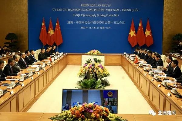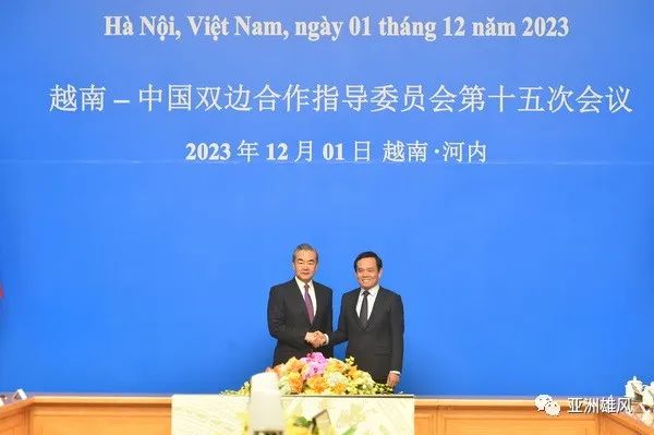當地時間2023年12月1日,中國—越南雙邊合作指導委員會第十五次會議在越南河內舉行,中共中央政治局委員、中央外辦主任、外交部長王毅和越南副總理陳流光共同主持,雙方多個部委和地方負責人作為機制成員線上線下參加。