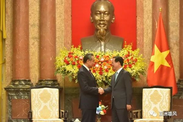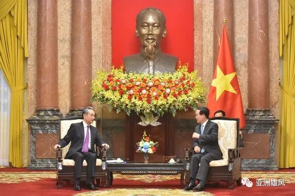 王毅說,中越有著深厚傳統友誼,今年是中越建立全面戰略合作伙伴關系15周年。主席同志多次表示,越方把鞏固和深化中越關系作為越南對外政策的戰略選擇和頭等優先。中國也將越南作為周邊外交的優先方向。我們愿同越方統籌推進下階段各領域合作,確保中越命運共同體建設行穩致遠。