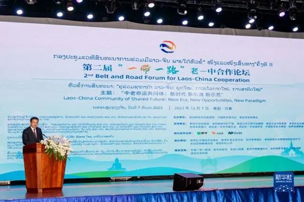 通倫向論壇致賀信表示,2023年是老中雙方合作具有歷史性重要意義的年度。新的五年行動計劃是兩國在新時期加強密切合作和高質量發展具有戰略意義的重要文本。本次論壇作為貫徹落實五年行動計劃的重要平臺和機制,將為加深兩國人民相互了解和深厚友誼作出積極貢獻。他表示,老撾黨和政府重視和支持共建“一帶一路”倡議與老撾“變陸鎖國為陸聯國”戰略對接。老中兩國間的合作以實際行動證明,老中鐵路等基礎設施項目、社會文化項目、老中經濟走廊等“一帶一路”倡議成果給老撾等發展中國家帶來了實實在在的利益。