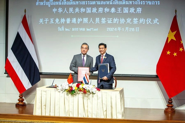 當地時間2024年1月28日,中共中央政治局委員、外交部長王毅在曼谷同泰國副總理兼外長班比舉行年度磋商。