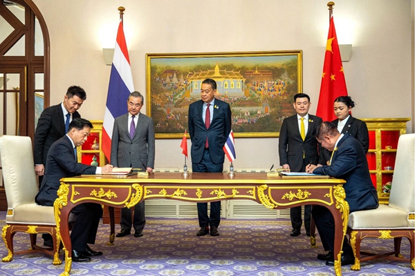 王毅說,中國始終將泰國作為周邊外交優先方向,此次訪泰就是要落實兩國領導人共識,推動兩國各領域合作,使“中泰一家親”能親上加親。昨天我同班比副總理兼外長進行了深入磋商,雙方一致同意進一步加強相互支持。臺灣問題事關中國主權和領土完整,中方贊賞泰方堅持一個中國原則,相信泰方將繼續理解和支持中國統一大業。中方也將繼續支持泰方維護國家主權安全,實現發展振興。中方愿同泰方保持高層交往,密切人文交流,以互免簽證為契機推動雙向旅游,深化經貿投資等領域務實合作。雙方要高質量共建“一帶一路”,加快中泰鐵路建設,打通泛亞鐵路中線,實現地區互聯互通,推動中老泰聯通發展構想盡早落實,為兩國長遠發展提供新動力,開辟新空間。