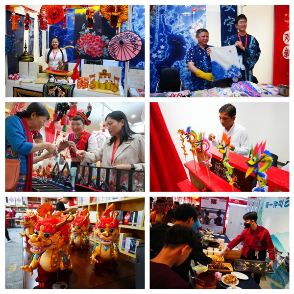 來賓們共同為新春集市開鑼,在展覽體驗區參與豐富精彩的新春活動。中緬兩國書法家獻上春聯書法作品。來自云南的非遺傳承人展示扎染、剪紙、剪影等傳統技藝。中國茶藝展示、武術表演吸引來賓駐足,引得陣陣掌聲。大家興致盎然,近距離感受和體驗中華文化,現場洋溢著友好、熱烈的節日喜慶氛圍。