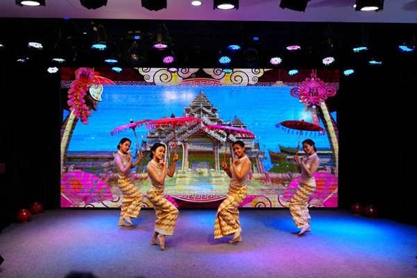 配樂舞蹈《甜蜜蜜》融合了中國歌曲和緬甸傳統舞蹈,展示了中緬兩國文化的交融。