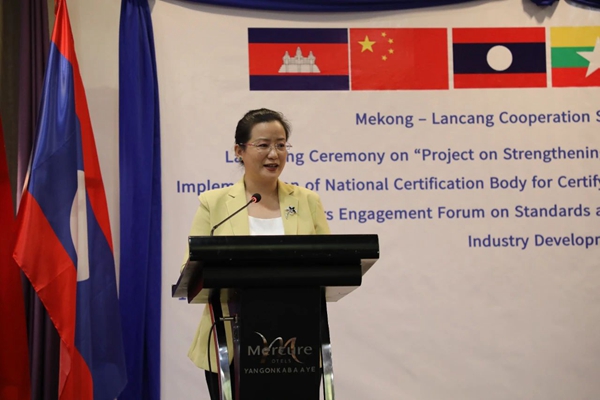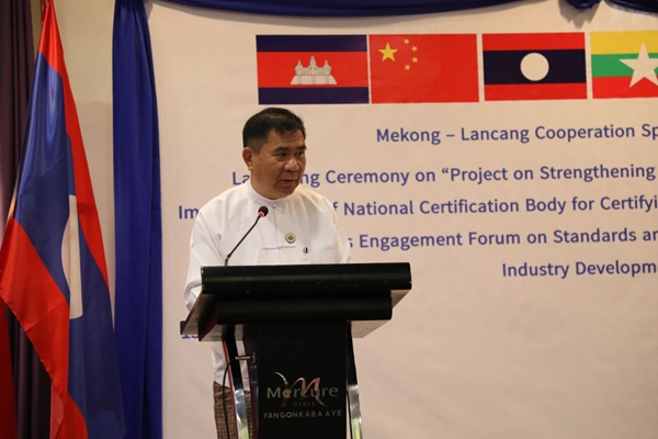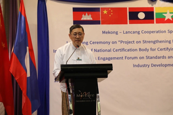 緬甸科技部長苗登覺與外交部戰略研究與培訓司副司長覺梭致辭表示,瀾湄合作為跨境經濟發展、產能提升、中小微企業成長發揮了重要推動作用。感謝中方設立的瀾湄合作專項基金支持緬甸開展“加強國家認證系統建設”項目,項目將支持緬甸完善質量標準基礎設施,幫助緬甸產品服務認證標準與國際接軌,通過消除區域國家間技術性貿易壁壘促進貿易發展。緬方將同中方加強合作,高質量高標準實施好項目。