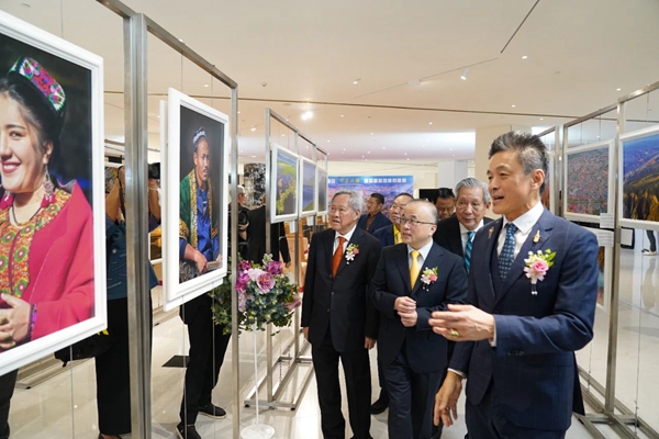 開幕式現場,與會嘉賓共同為攝影展剪彩,并現場參觀展出。140多幅記錄新疆自然和人文風光的精美攝影作品引得與會嘉賓頻頻駐足觀看。