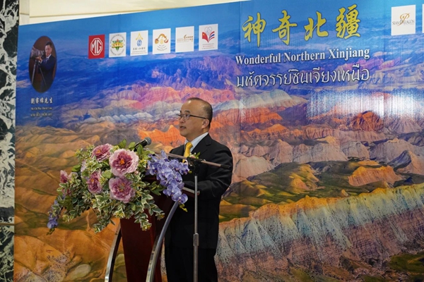 2月26日,駐泰國使館公使吳志武出席由泰中文化促進委員會和旅泰華人攝影師劉霽緯共同舉辦的“神奇北疆”新疆主題攝影展開幕式。泰國前副總理、泰中文化促進委員會主席披尼、泰國潮州會館主席徐惠深、泰華進出口商會理事長林俊然、巴基斯坦駐泰使館臨時代辦亞西爾·侯賽因等出席。