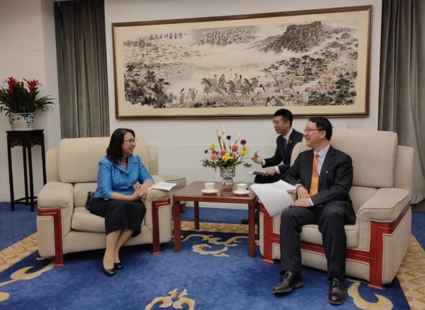 2024年3月14日,外交部亞洲司司長劉勁松會見柬埔寨新任駐華大使宋嘉薇。