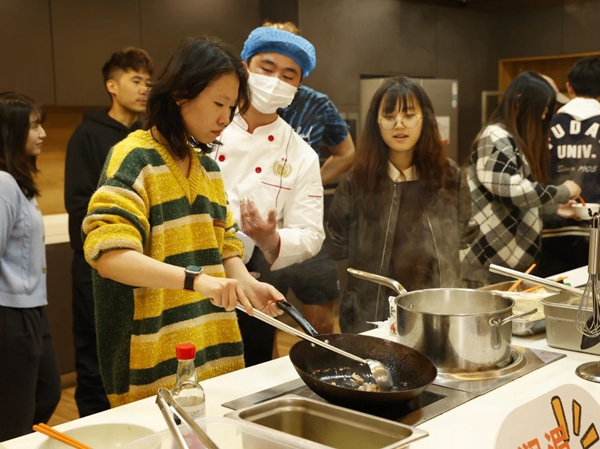 本期“瀾湄文化美食周”由泰國美食日、越南美食日、老撾美食日、柬埔寨美食日、緬甸美食日和中國美食日構成,參與活動的師生們在食堂大廚的指導下親手烹飪并品嘗了瀾湄國家的特色美食,如:泰式菠蘿炒飯、越南水果撈、柬埔寨火鍋、椰子雞湯面、青海尕面片等。除品嘗美食外,師生們還可以試穿各國的傳統服飾,參與各國文化知識問答贏取獎品,根據瀾湄流域的標志性建筑物、國旗等來設計專屬于個人的創意餅干,在感受異國文化魅力的同時進一步了解各國的國情知識,體悟瀾湄國家的發展變化。