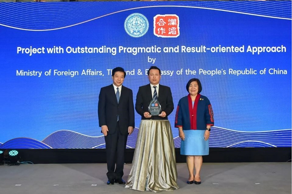 韓大使同布薩迪副次長一同按下啟動按鈕,標志著2024年瀾湄合作專項基金泰國項目正式啟動。韓大使還同布薩迪副次長向2017-2022年泰方項目中榮獲“最具次區域意義”、“最強務實合作”及“最佳項目管理”稱號的優秀項目頒發獎杯,鼓勵各執行單位強化項目實施,確保合作實效。