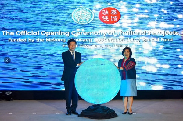 4月5日,中國駐泰國使館和泰國外交部共同舉辦2024年瀾湄合作專項基金泰國項目啟動儀式暨“瀾湄周”紀念活動。韓志強大使與泰國外交部副次長兼代理次長布薩迪分別作主旨發言,老撾、緬甸駐泰國大使,柬埔寨、越南駐泰國使館代表,以及泰國外交部、高教科創部、自然資源部、旅體部、農合部、工業部、內政部、衛生部、水資源辦公室等政府部門及項目執行單位近百人參加。