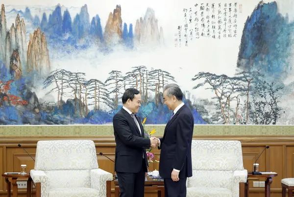 2024年4月8日,中共中央政治局委員、中越雙邊合作指導委員會中方主席王毅在北京應約會見陪同越南國會主席王庭惠訪華的越南副總理、越中雙邊合作指導委員會越方主席陳流光。