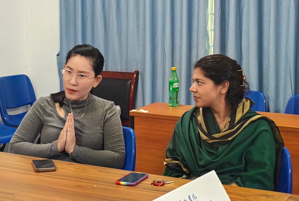 接著,在主持人提及瀾湄六國的文化共性與差異時,留學生同學們也紛紛講起了自己家鄉的獨特文化。其中,來自柬埔寨的同學 Him Sophany向我們介紹了合十禮,柬埔寨人民通常通過這個禮節向人們傳遞著友好、虔誠、平和的善意。