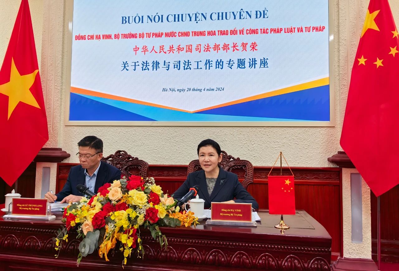 4月18日至21日,司法部部長賀榮率團應邀對越南進行訪問,拜會越南政府總理范明政,并分別與越南公安部部長蘇林、越共中央內政部部長潘庭濯以及越南司法部部長黎成龍舉行會談,就深化雙方法律和司法領域交流合作達成廣泛共識,取得務實成果。與越南公安部簽署關于合作的諒解備忘錄,與越南司法部簽署關于舉行司法行政部門首次邊境會晤的協議。期間,專題宣講了習近平法治思想和新時代中國法治建設成就等。中國駐越南大使熊波參加上述活動。