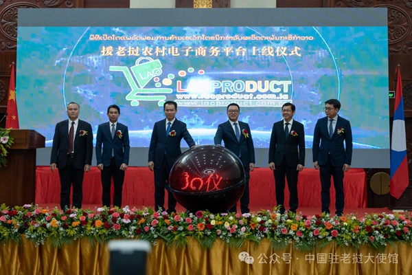 5月13日下午,中國援老撾農村電子商務平臺上線儀式在老撾萬象舉行。中國駐老撾大使館臨時代辦王暢,老撾工貿部部長瑪萊通、副部長瑪諾通,老中合委會常務副主席賽薩納等出席。老撾工貿部、農林部、國家工商會和中老企業代表約80人參加。