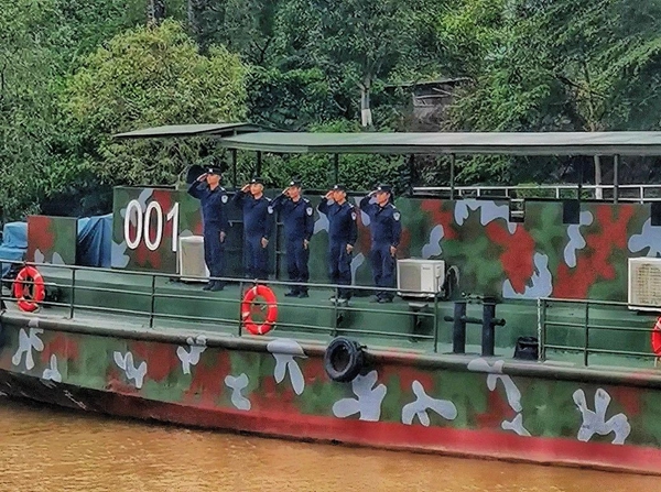 5月25日,中國駐緬甸大使陳海率隊赴位于緬甸、泰國、老撾邊境的緬甸大其力考察。在緬甸內政部等部門主管官員陪同下,陳大使一行實地考察瀾湄合作專項基金支持建設的緬甸內政部撣邦萬崩水警分局設施,并乘坐中方援助的水上巡邏艇赴緬泰老邊境交界處金三角水域,實地了解四國聯合巡邏情況,并慰問中方駐點警務人員。