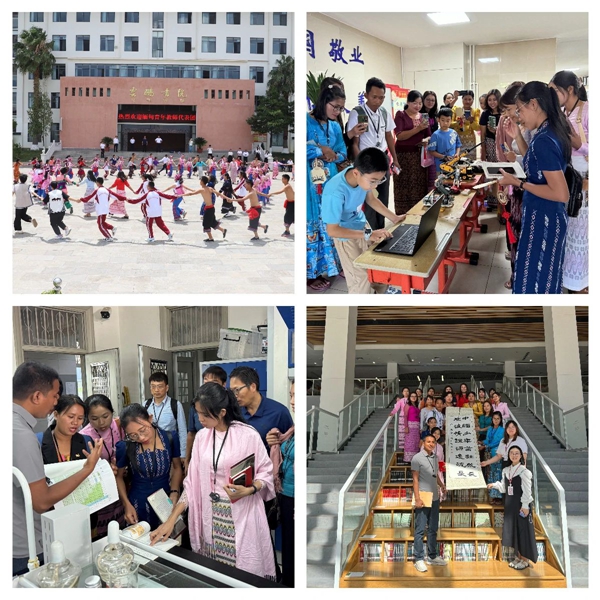 在北京市京源學校,代表團走訪幼兒、小學、中學部,了解該校十五年一貫制教學實踐;在昆明市石林縣民族中學,代表團觀看學生們帶有濃郁民族特色的歌舞表演;在西南聯大研究院附屬學校,學生們向代表團獻上親手制作的糕點、剪紙、插花。中國學校完善的硬件設施、整潔明亮的教室、先進的辦學理念、溫馨的校園文化、豐富精彩的特色課程給緬甸青年教師留下深刻印象。