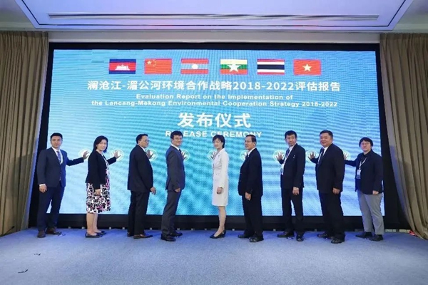 中國生態環境部國際合作司巡視員崔丹丹、瀾滄江—湄公河合作中國秘書處參贊吳曉風、柬埔寨環境部政策和戰略總局副局長亨·燦東、老撾自然資源與環境研究院院長布曼尼萬、緬甸自然資源與環境保護部環境保護司副司長山烏、泰國自然資源與環境部代表、越南駐昆明總領事館代表、云南省生態環境廳副廳長趙子杰、瀾滄江—湄公河環境合作中心代表共同發布《瀾滄江—湄公河環境合作戰略2018-2022評估報告》。