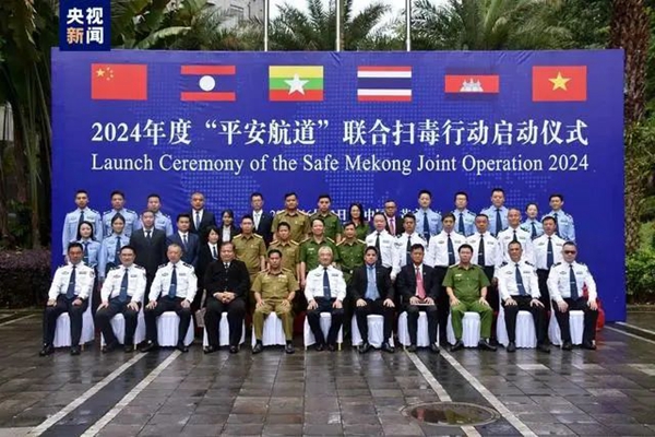 2024年6月13日,2024年度“平安航道”聯合掃毒行動在中國云南省德宏州芒市啟動。中國、老撾、緬甸、泰國、柬埔寨、越南禁毒部門負責人參加了啟動儀式。