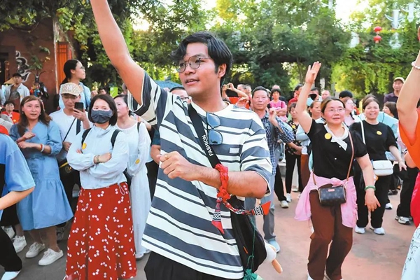 緬甸青年王偉對恐龍化石充滿興趣?!斑@是我第一次看到這么多恐龍化石,我聽解說聽得特別仔細,太震撼了!”來到普者黑,王偉坐在船頭,泛舟湖面,與其他外國友人激情地打水仗,也和路過的游人船只熱情交流,一起唱中文歌,跳“科目三”。面對鏡頭,他快樂地喊出:“媽媽我在中國!我后面好多‘老外’!”