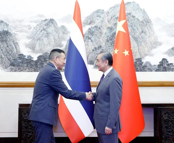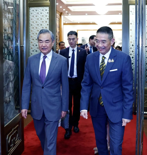 王毅說,中國始終高度重視中泰關系,視泰國為值得信賴的合作伙伴和本地區的和平力量、穩定因素。中方堅定支持泰方走符合自身國情的發展道路,推進“八大愿景”等發展戰略,支持泰方在國際地區事務中發揮更重要作用。明年將迎來中泰建交50周年,兩國關系發展面臨新機遇。雙方要及早規劃建交50周年慶祝活動,加強高層引領,深化全方位戰略合作。前幾天,西部陸海新通道中老泰馬跨境鐵路班列雙向首發,凸顯中老泰聯通發展構想的重要意義,雙方要共同打通中老泰鐵路聯通堵點,提升互聯互通水平。強化執法安全合作,共同打擊網賭電詐等跨境犯罪。用好“免簽時代”便利,擴大人文交流,密切青少年友好交往,推動中泰友好薪火相傳。