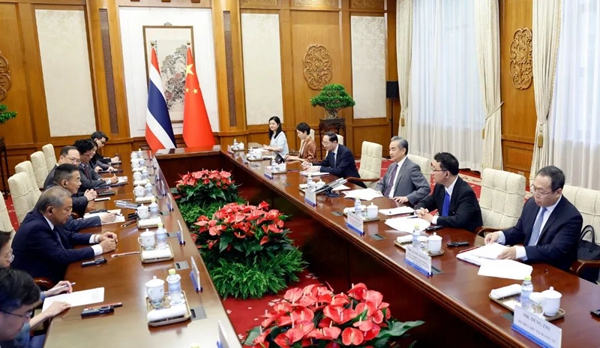 王毅表示,中泰一家親,兩國是好鄰居、好親戚、好朋友,人民友好源遠流長、深入人心。建交近半個世紀以來,無論國際風云如何變幻,兩國始終相互信任、守望相助、攜手發展。在習近平主席和泰國領導人戰略引領下,中泰命運共同體建設扎實推進、捷報頻傳。中國連續十余年保持泰國最大貿易伙伴地位,躍升為泰國最大外資來源國,在務實合作領域走在中國同東盟國家合作前列。今年以來,兩國游客“雙向奔赴”,勢頭喜人,中國赴泰游客已超300萬人次,泰國來華游客也遠超疫情前水平。