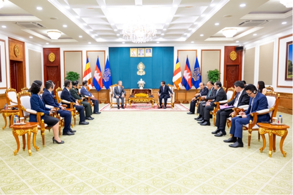 2024年7月18日,汪文斌大使拜會柬埔寨參議院主席洪森。