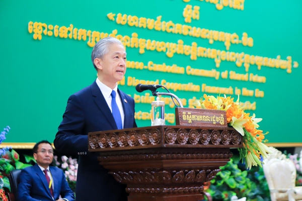 汪在致辭中表示,習近平主席提出的構建人類命運共同體理念,在國際上得到廣泛支持和響應。中柬是構建命運共同體的先行者,為推動構建人類命運共同體發揮了示范引領作用。希望雙方加強戰略對接,攜手應對挑戰,倡導雙贏共贏,推動中柬命運共同體建設結出更加豐碩的果實。