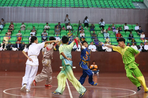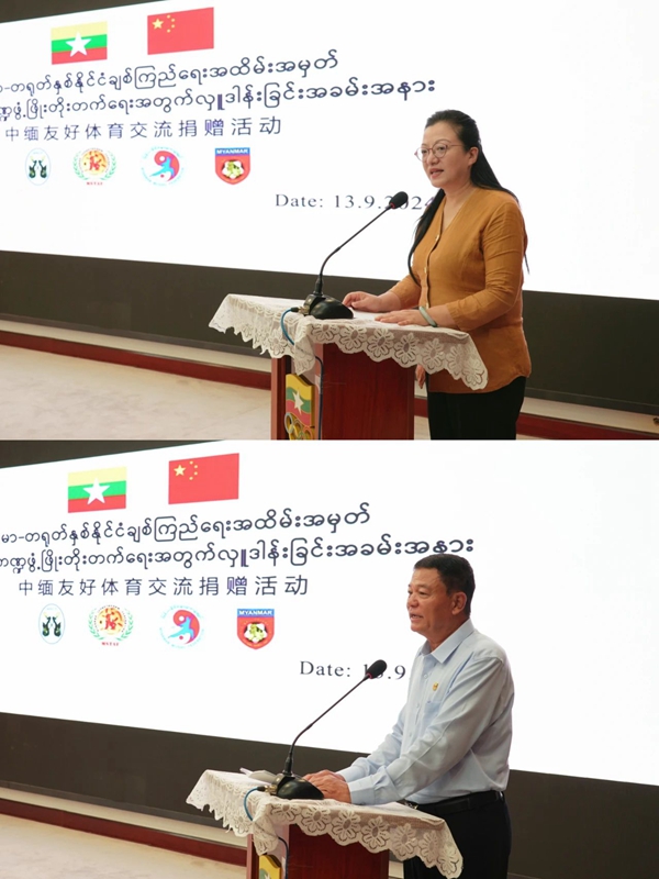 2024年9月13日,中緬體育交流捐贈活動在緬甸仰光杜溫納體育館舉行。中國駐緬甸大使馬珈、使館鄭志宏公參、李千國參贊、緬體育與青年事務部部長民登贊、仰光省首席部長梭登及緬武術、龍舟、足球、藤球協會代表和運動員約150人參加。