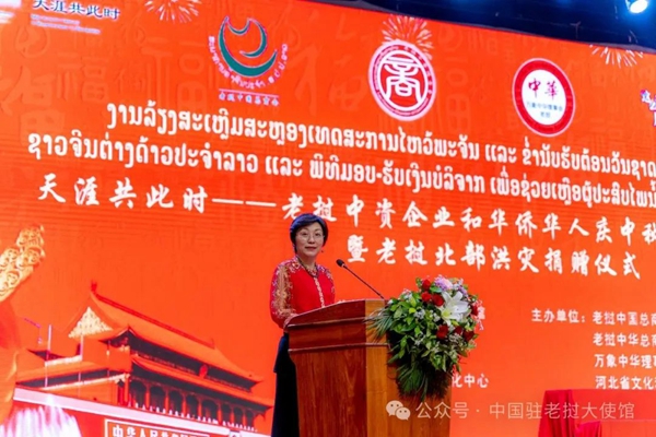 9月13日,中國駐老撾大使方虹出席“天涯共此時”—老撾中資企業和華僑華人慶中秋·迎國慶聯歡晚會暨老撾北部洪災捐贈儀式并致辭。老撾建國陣線中央主席辛拉馮、內政部長維萊馮、工貿部長瑪萊通和在老華人華僑、中資機構代表等1300余人出席。