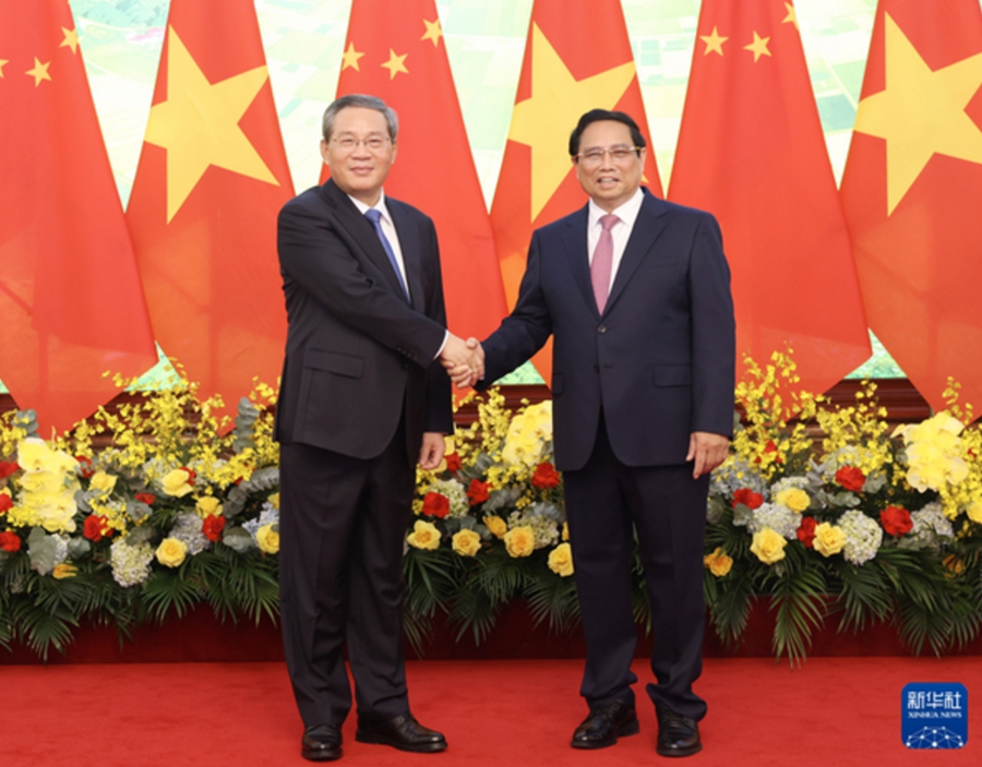 李強指出,中越同為發展中國家,都處在現代化建設的關鍵時期,中方堅定支持越南走穩走好符合本國國情的社會主義道路,愿同越方加強發展戰略對接,充分發揮中越雙邊合作指導委員會機制作用,落實好共建“一帶一路”倡議和“兩廊一圈”框架對接合作規劃,深化互聯互通、貿易投資以及旅游、醫療、防災減災等領域合作,擴大本幣結算合作,拓展數字經濟、綠色發展等新興產業合作,不斷推動各領域合作提質升級。雙方要以明年中越建交75周年和“中越人文交流年”為契機,進一步深化人文交流,增進兩國人民特別是年輕一代的相互了解和感情,讓中越友好事業代代傳承。雙方要堅持友好協商,妥善處理分歧,擴大海上合作。中方愿同越方加強在聯合國、亞太經合組織等多邊平臺的協調配合,推動全球治理朝著更加公正合理的方向發展,維護廣大發展中國家利益,引領國際社會一道構建人類命運共同體。