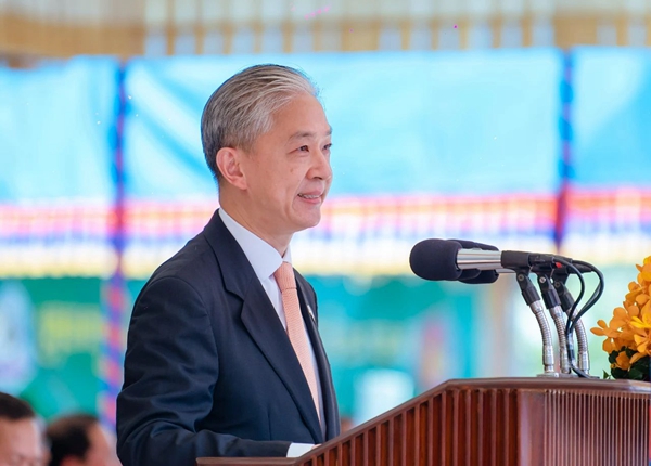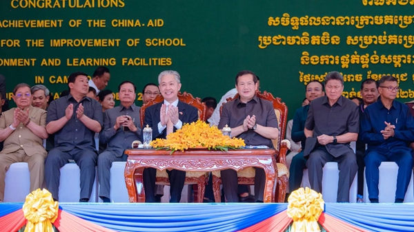 2024年10月26日,中國援柬埔寨教育環境與設施改善項目慶祝儀式在柬埔寨磅湛省賓起康中學舉行。中國駐柬埔寨大使汪文斌與柬埔寨首相洪瑪奈共同出席并致辭,奈薩文、孫占托、韓春納洛、賽桑奧四位副首相及柬多位內閣成員和各界代表逾千人參加。