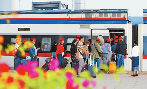 今年10月下旬以來,隨著跨境旅游熱和老撾節假日增多,乘坐中老鐵路列車前往老撾瑯勃拉邦的旅客持續增長。截至11月10日,中老鐵路瑯勃拉邦站累計發送旅客突破100萬人次,同比增長51%。截至11月11日,中老鐵路老撾萬榮站累計發送貨物突破100萬噸,同比增長4.3%。為最大程度滿足旅客出行需求,中老鐵路今年相繼在中國西雙版納至老撾瑯勃拉邦間增開國際旅客列車2列,開行“星光·瀾湄號”跨境旅游列車等。