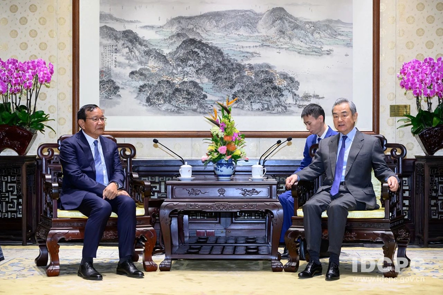 王毅表示,中柬友誼歷經國際風云考驗,歷久彌堅。柬埔寨是首個同中方簽署構建命運共同體行動計劃的國家。在習近平總書記和洪森主席的戰略引領下,中柬鐵桿友誼發展進入新階段。中方高興地看到,洪瑪奈首相領導柬新一屆政府,堅定奉行人民黨對華友好政策,為中柬關系發展作出新貢獻。面對復雜變化的國際地區形勢,中方愿同柬方密切高層交往,深化戰略溝通,加強黨際、外交、經貿等各領域交流合作,推進新時代中柬命運共同體建設不斷走深走實,以中柬高水平戰略協作有效應對風險挑戰,堅決捍衛兩國正當合法權益,促進地區和平穩定與發展繁榮。