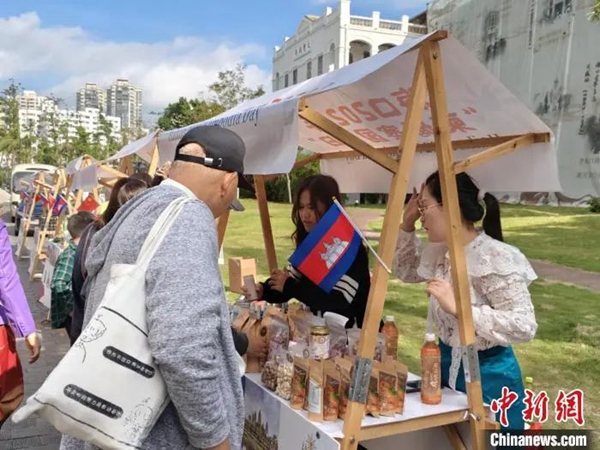 隨著中柬兩國人文交流深入,柬埔寨來華旅居、留學人員增多?;顒又?,來自柬埔寨的留學生賢金鳳介紹家鄉特產。賢金鳳說,她正在海南外國語職業學院酒店管理專業學習,“越來越多的柬埔寨游客來到海南,我計劃畢業后在海南從事酒店工作”。