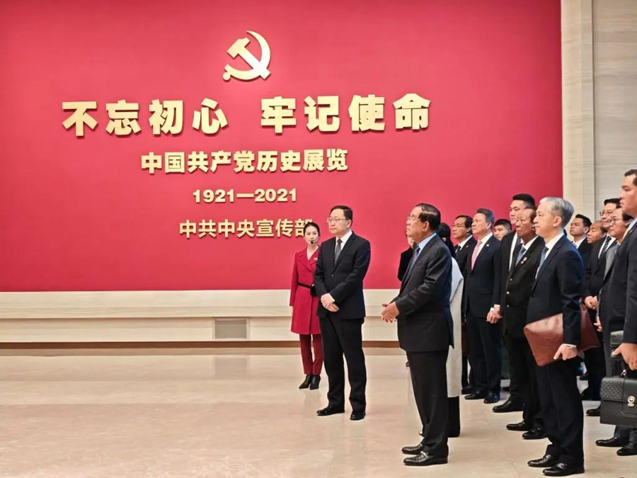 “了解研究歷史,對推進實現國家富強、開創人類美好未來具有重要意義。”12月4日上午,正在對中國進行正式友好訪問的柬埔寨人民黨主席、參議院主席洪森專程來到中國共產黨歷史展覽館參觀。一張張歷史圖片、一件件文獻實物、一個個逼真場景……展廳內,洪森不時駐足,由衷贊嘆中國共產黨領導中國取得的發展成就。