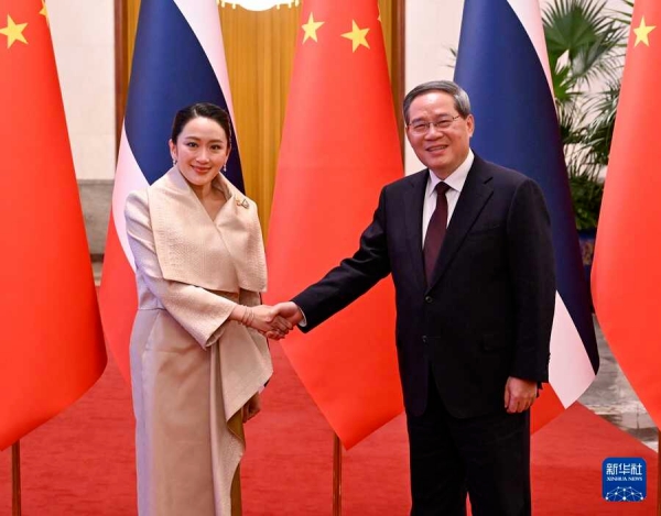 2025年2月6日下午,國務院總理李強在北京人民大會堂同來華進行正式訪問的泰國總理佩通坦舉行會談。