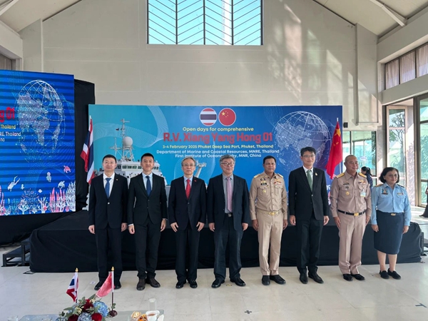 2025年2月3-4日,中國自然資源部第一海洋研究所在泰國普吉成功舉辦“向陽紅01”綜合科考船開放日活動。來自泰國自然資源與環境部、外交部、海軍、高校、普吉府、中國駐宋卡總領館等共200余名嘉賓參加。“向陽紅01”科考隊員、船員向參觀人員詳細介紹情況,并播放了海洋多學科調查及中泰海洋合作成果視頻材料。雙方進行熱烈互動和交流。未來中泰雙方將以中泰氣候與海洋生態系統聯合實驗室為平臺,持續加強國際交流科研合作,共同為21世紀“海上絲綢之路”建設貢獻力量。開放日結束后,“向陽紅01”綜合科考船離開普吉碼頭執行東印度洋科學考察任務,并邀請了1名泰國普吉海洋生物中心科研人員參航。