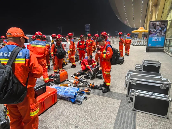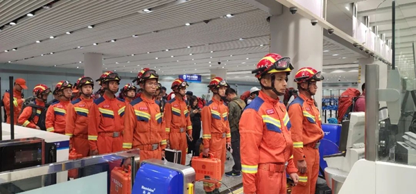 3月29日6時許,中國云南救援醫療隊一行37人,攜帶全功能生命探測儀、地震預警系統、便攜式衛星、無人機等應急救援物資共112臺套從昆明長水國際機場出征赴緬。