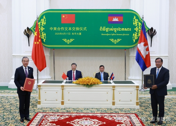 當地時間2025年4月17日晚,國家主席習近平同柬埔寨首相洪瑪奈在金邊和平大廈舉行會談。兩國領導人一致同意攜手構建新時代全天候中柬命運共同體,宣布2025年為“中柬旅游年”。