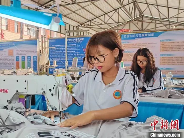 來自緬甸仰光的蘇雪妮從小酷愛畫畫,在得知能到中國上學后,她特意選擇三年制服裝專業,希望實現設計夢想。在學校上課之外,蘇雪妮還在學校旁邊的服裝產業園區體驗現實版課堂。談及未來,她希望把緬甸傳統織錦技藝與中國智造相結合,制作出兼具文化融合特色與高品質的服裝。