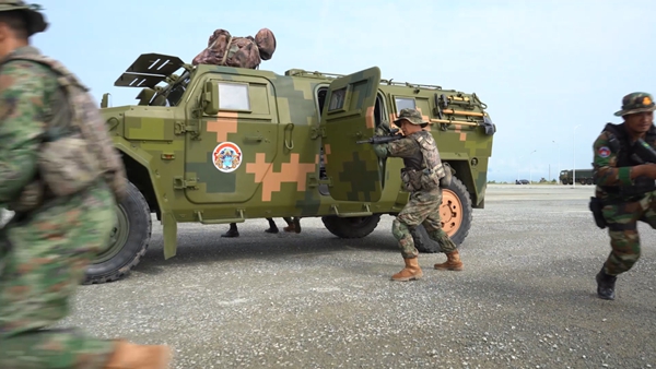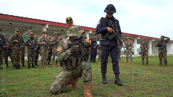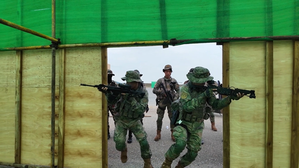 中柬雙方參演官兵混合編組,分為突擊營救、外圍封控、情報偵察等多個小隊,同步展開訓練。