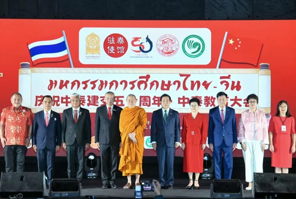 “慶祝中泰建交50周年·中泰教育大會”25日在曼谷舉行,泰國教育部長蓬普主持開幕式,中國駐泰國大使韓志強、泰國副僧王頌德通猜出席并致辭,來自泰各地的教育界代表兩千余人參加大會。