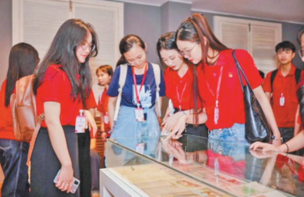 在廣東廣州越秀區文明路,有一座兩幢三層磚木結構的騎樓建筑。這里便是越南青年革命同志會舊址。兩國青年一同參觀“革命之路——胡志明同志在中國”專題展覽。