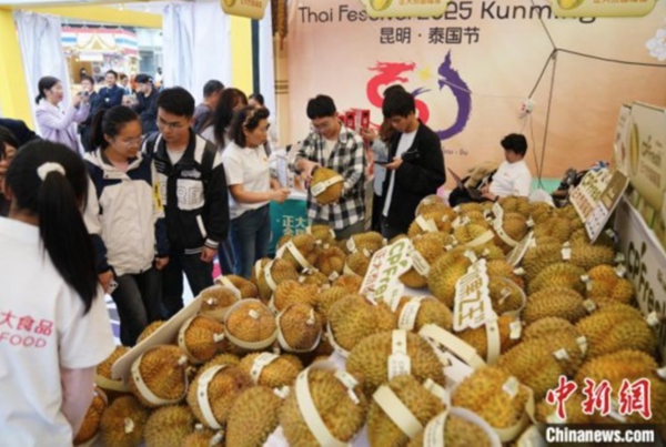 一家泰國企業將泰國直供榴蓮帶到現場,受到不少市民歡迎。該企業云南區市場部負責人申君婉月表示,隨著中老鐵路通車、西雙版納關累港口岸開放,各種泰國水果能夠更便捷地進入中國市場。