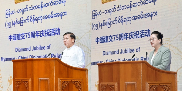 6月8日,中緬建交75周年慶?;顒釉趦缺榷悸≈嘏e行。緬甸領導人敏昂萊及緬政府和軍界高層出席。中國駐緬甸大使馬珈偕使館外交官出席。中緬各界友好人士參加活動。